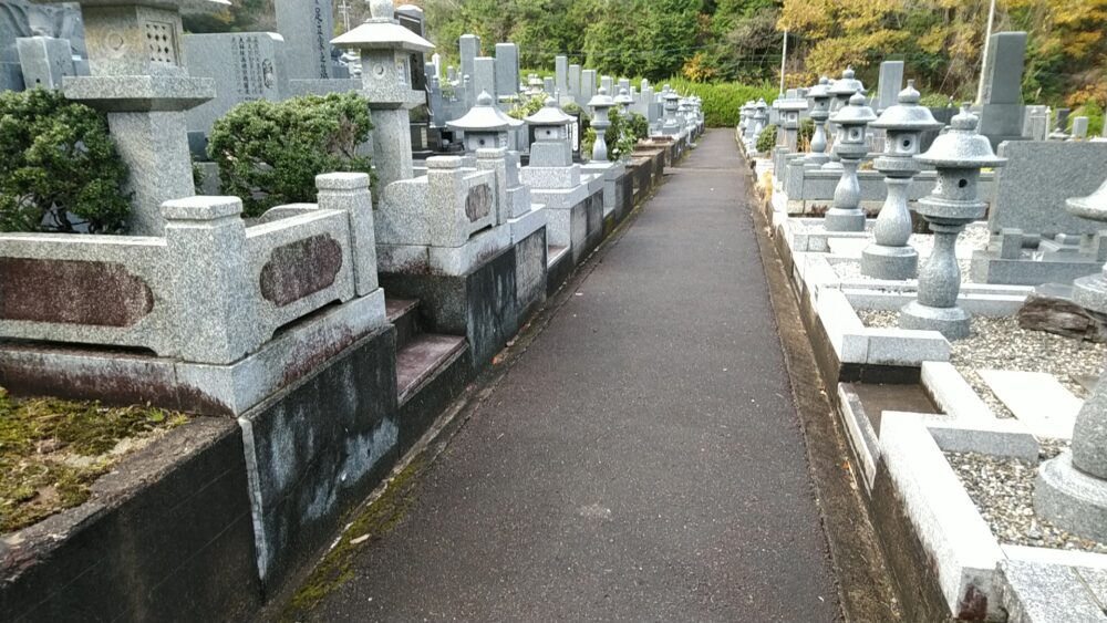 斜面に墓地が造成されているので、エリアによっては、通路より高いエリアがあります。